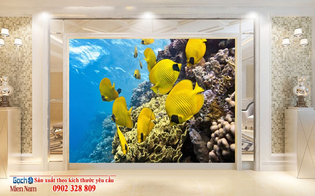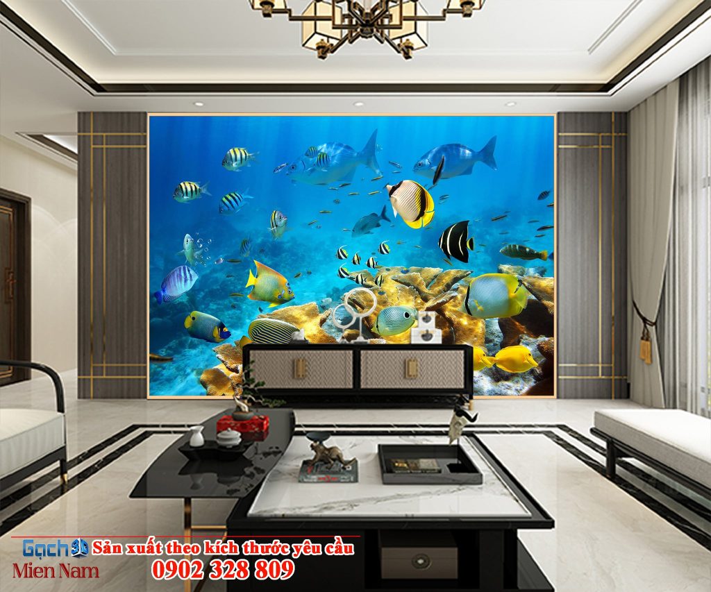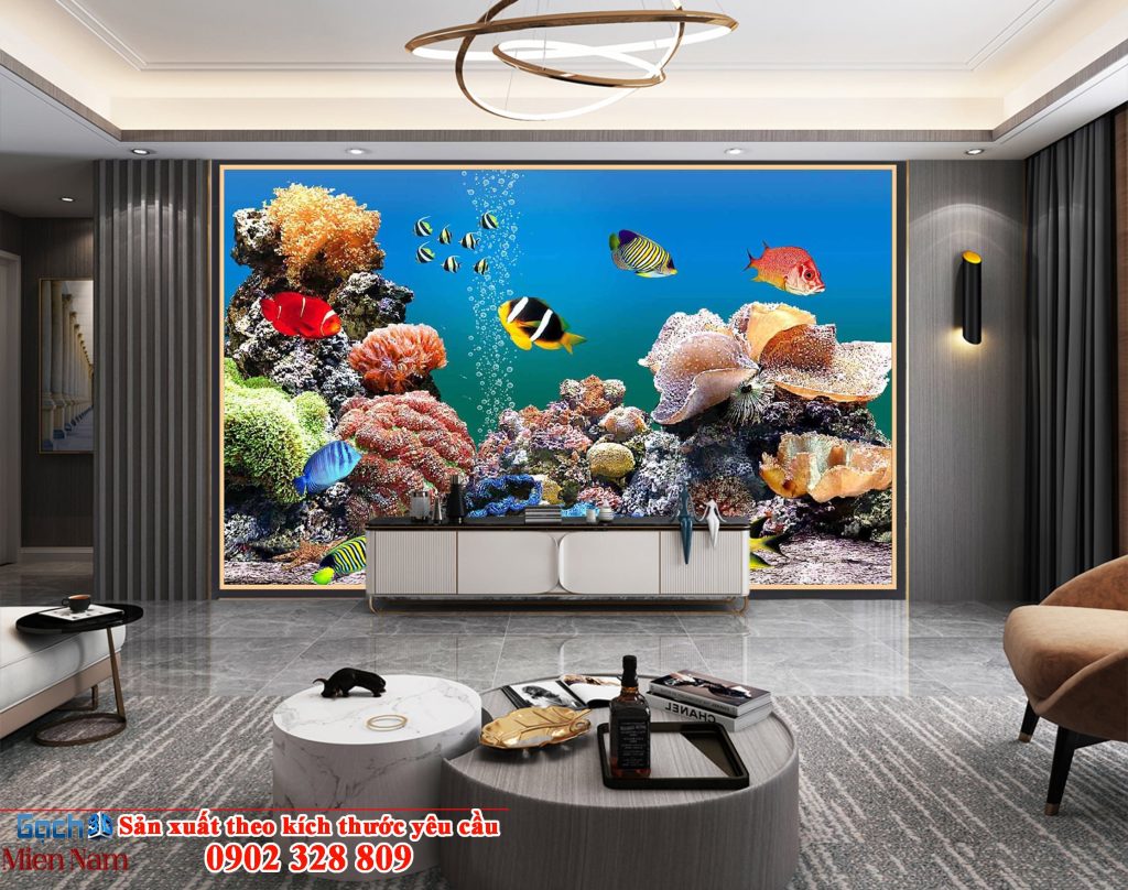 Tranh gạch 3D ốp tường đại dương là sản phẩm độc đáo mang lại cảm giác sống động như bạn đang đứng ngay giữa một môi trường đại dương rộng lớn