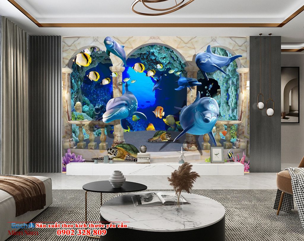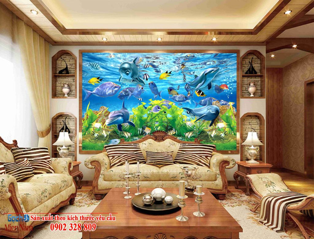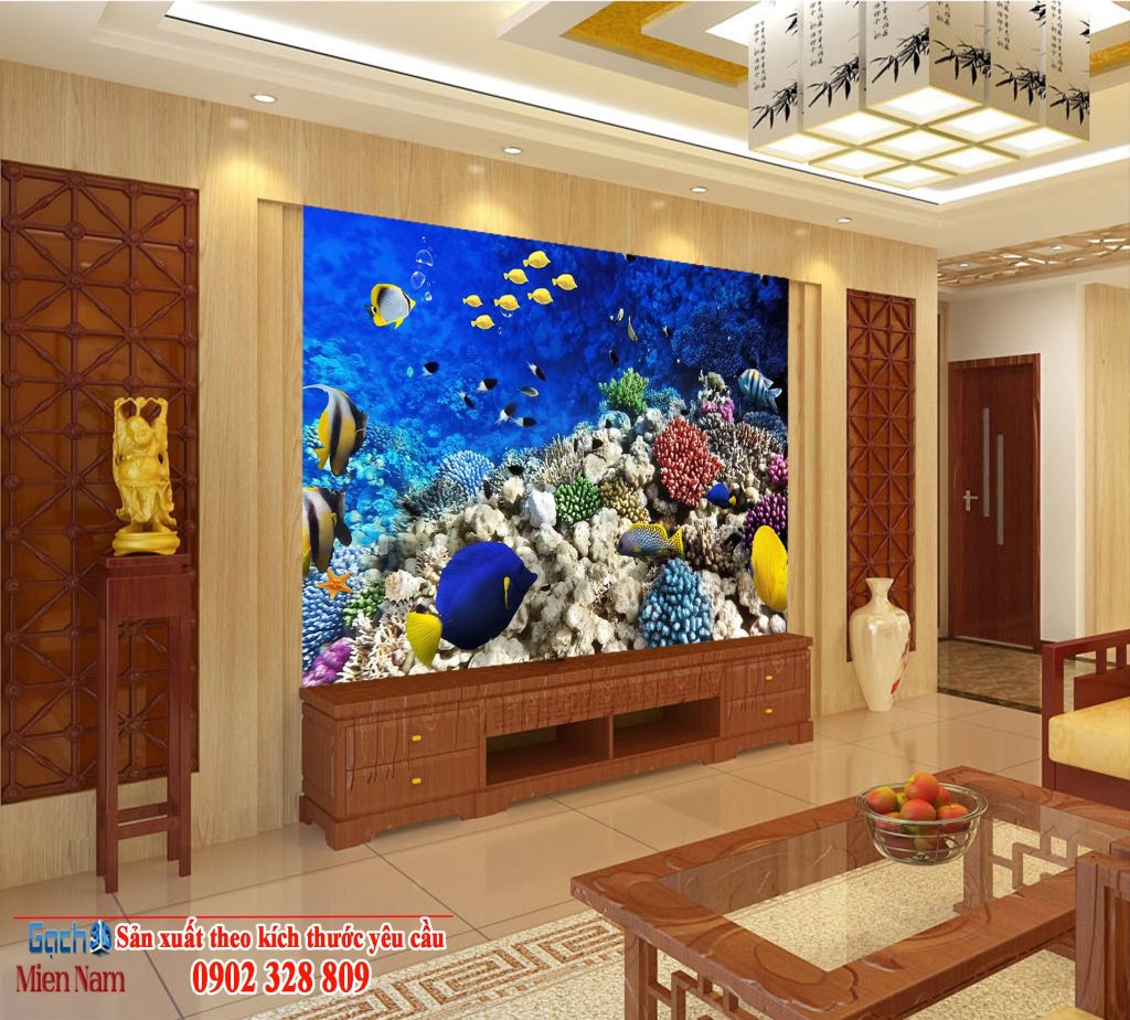 Sử dụng tranh gạch 3D ốp tường đại dương sẽ giúp cho không gian sống của bạn trở nên độc đáo và thu hút hơn