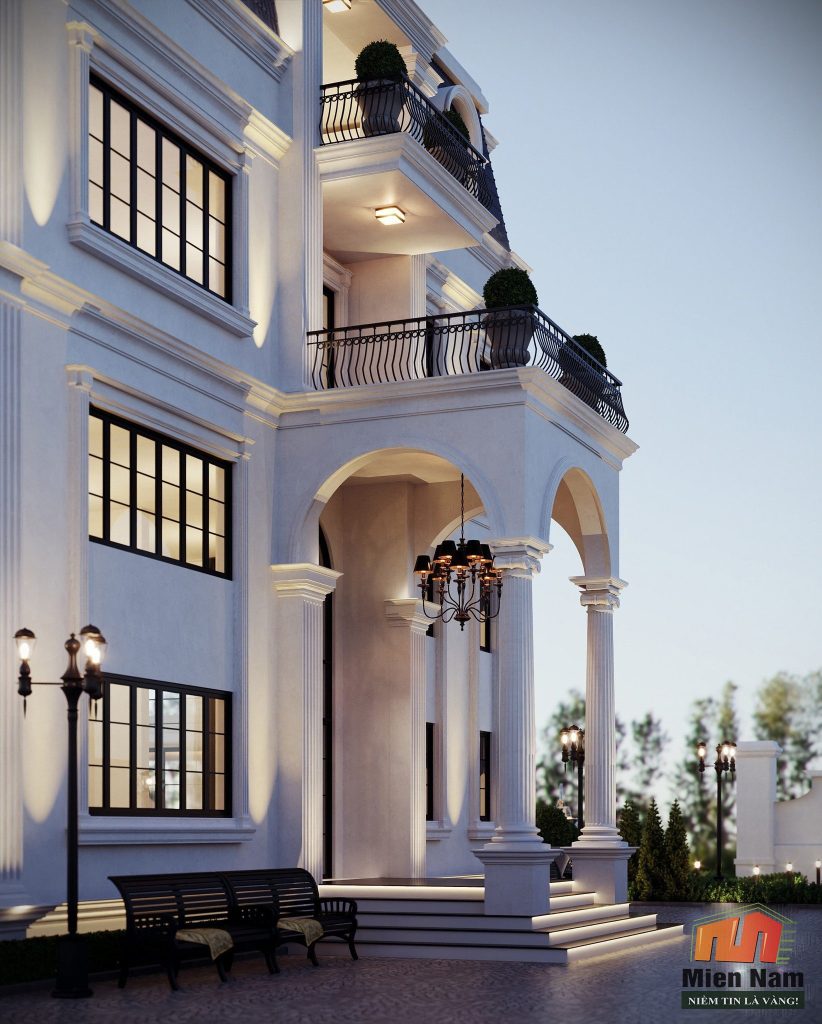 Biệt thự tân cổ điển thường có những chi tiết tinh tế, đồng bộ và độc đáo, tạo nên sự hoàn hảo cho kiến trúc.
