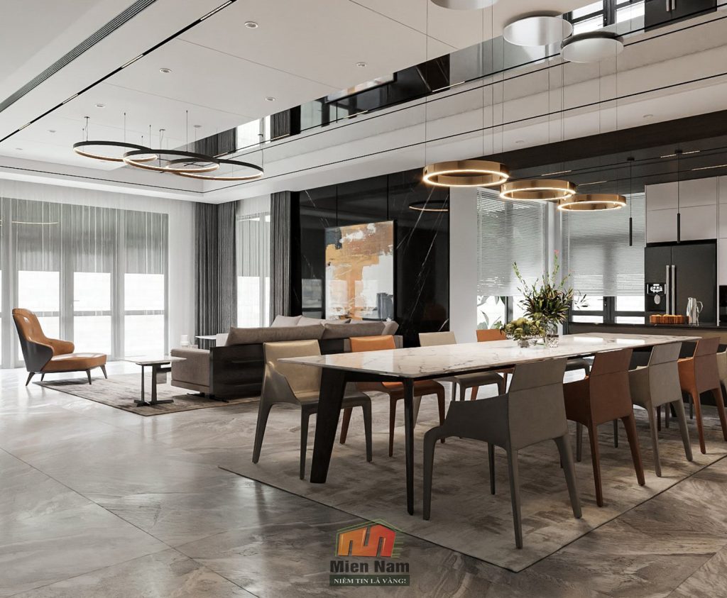Căn biệt thự hiện đại thường thiết kế theo phong cách đơn giản, tối giản và ấn tượng, tạo không gian sống tiện nghi và thoải mái cho cư dân.