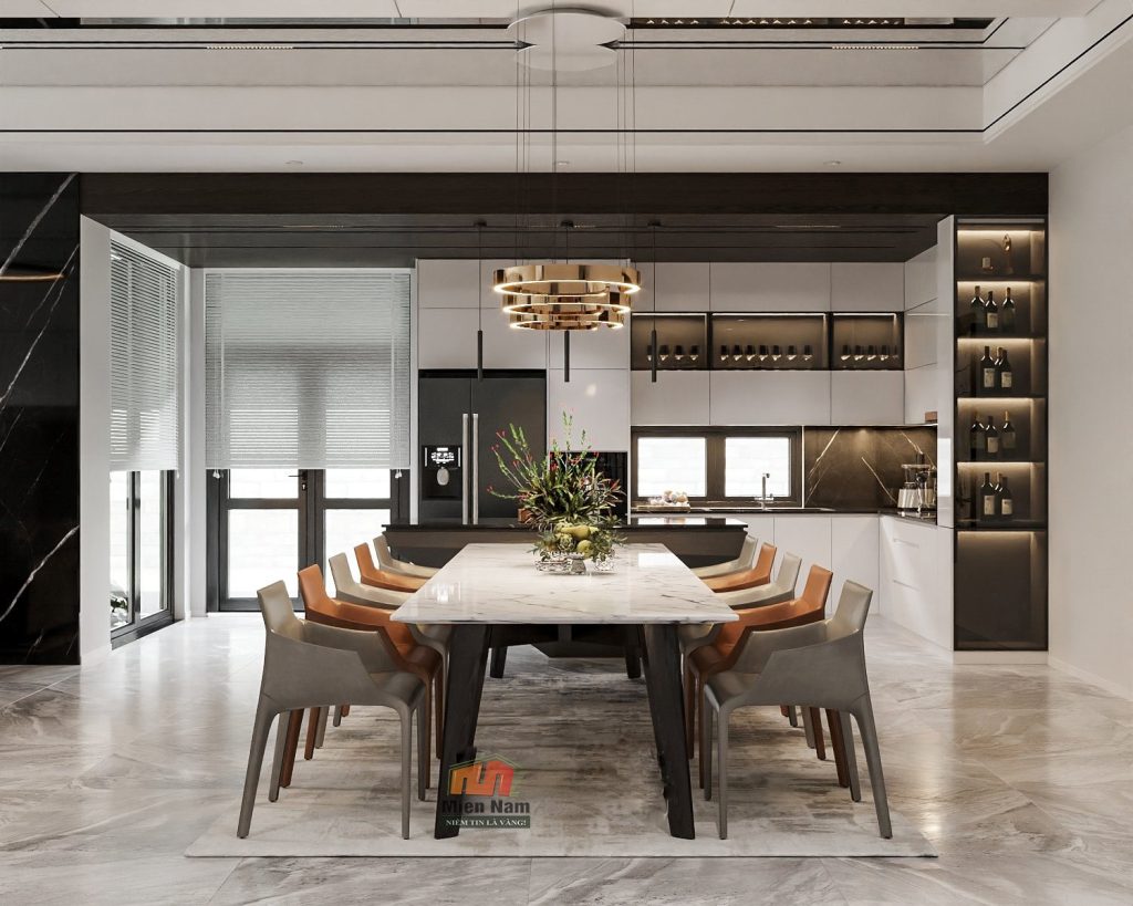 Với thiết kế không gian mở và tiện nghi, căn biệt thự đẹp tạo nên sự thoải mái và thoáng đãng cho gia chủ.