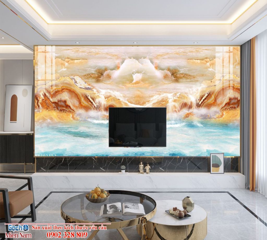 Gạch tranh trang trí phòng khách đá cẩm thạch là sản phẩm trang trí nội thất đang được ưa chuộng hiện nay nhờ những ưu điểm nổi trội của nó. Đầu tiên, gạch tranh 3d đá cẩm thạch mang lại vẻ đẹp sang trọng, độc đáo và sáng tạo cho không gian sống của bạn. Bạn có thể tùy ý lựa chọn các mẫu gạch tranh 3d đá cẩm thạch phù hợp với phong cách và sở thích của mình, từ mẫu đơn giản đến phức tạp.