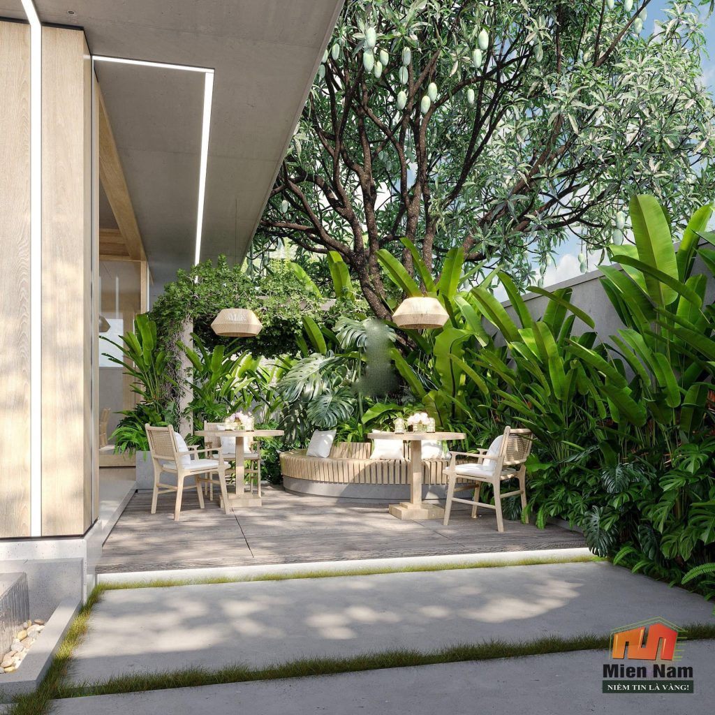 e.Biệt thự xanh là mẫu biệt thự đẹp dành cho những ai thích gần gũi thiên nhiên :