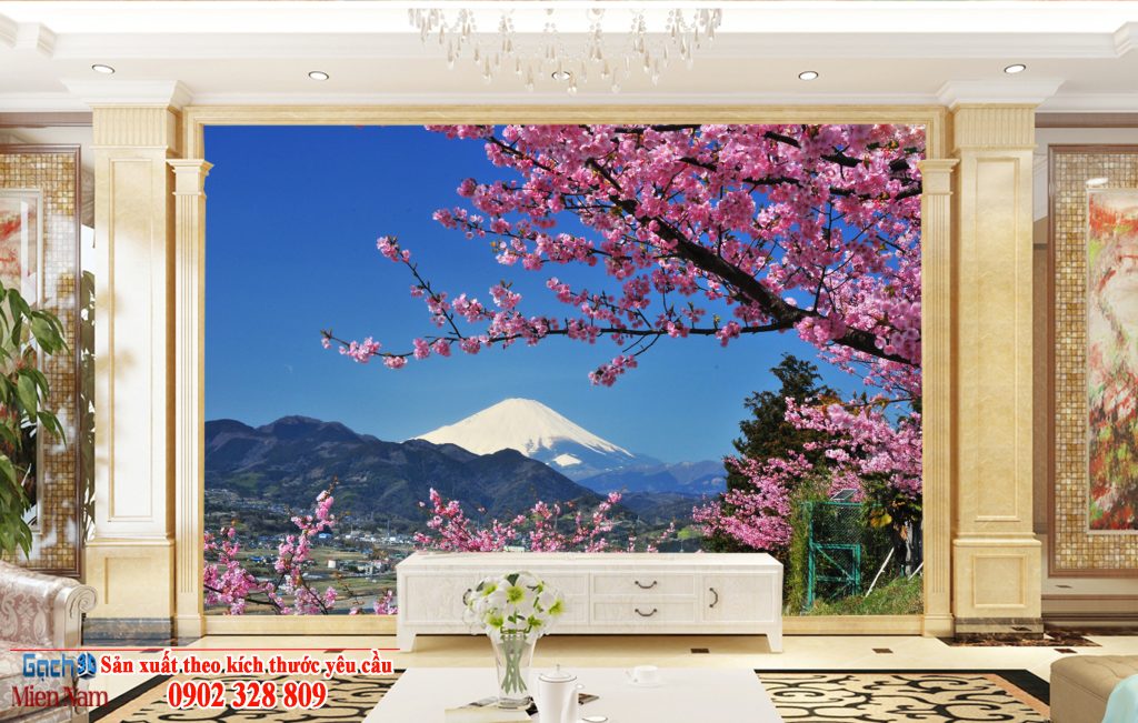 Với thiết kế 3D, tranh gạch hoa anh đào sẽ tạo nên một hiệu ứng sâu rộng cho không gian