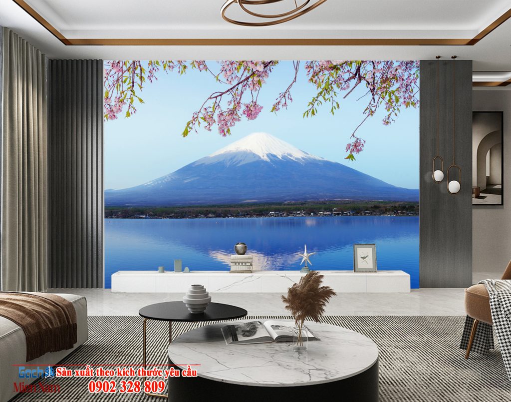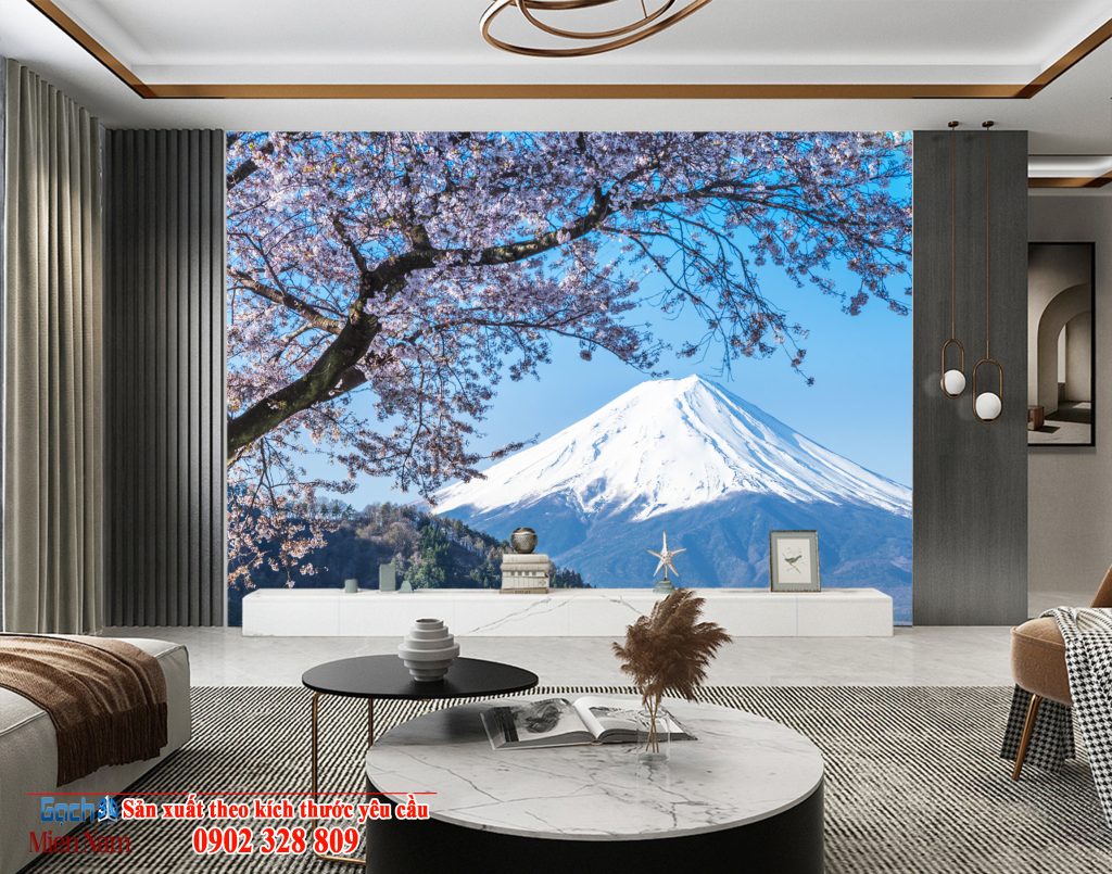 Hoa anh đào được chọn làm chủ đề chính cho tranh gạch 3D, tạo nên một vẻ đẹp đầy tinh tế và truyền thống