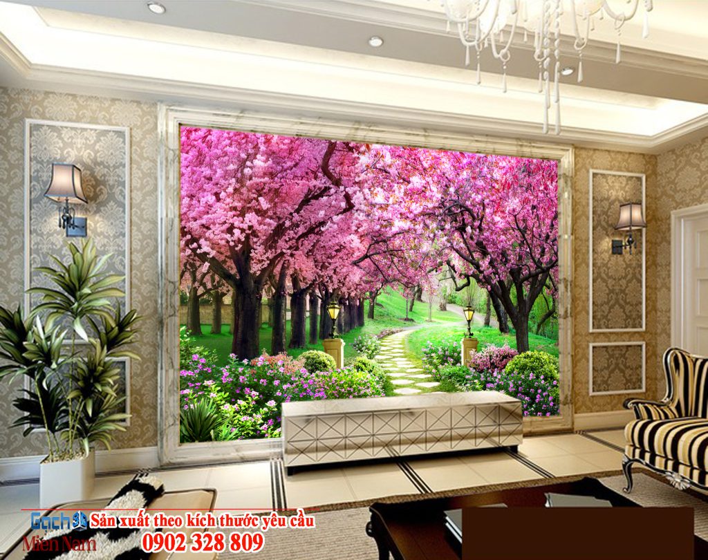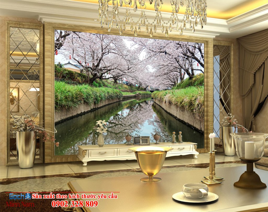 Với tranh gạch 3D hoa anh đào, không cần nhiều phụ kiện trang trí khác, vẫn đủ để tạo nên sự ấn tượng và thu hút cho không gian