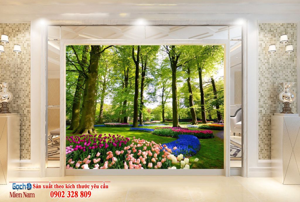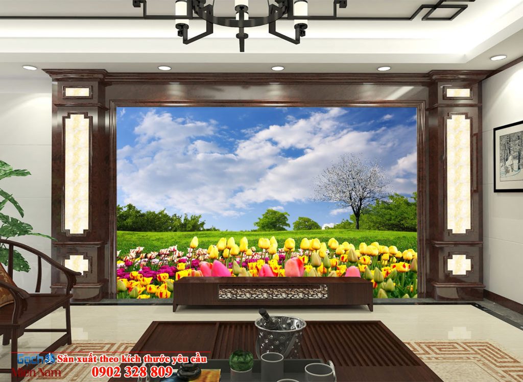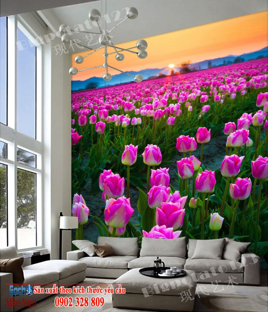 Không gian thơ mộng với tranh gạch 3d mâu hoa tulip